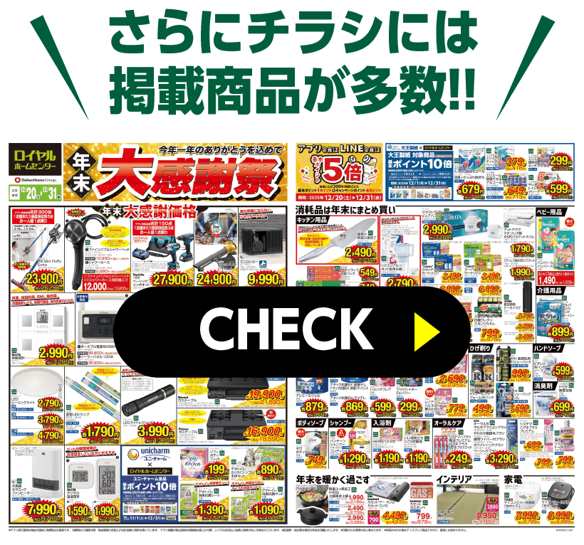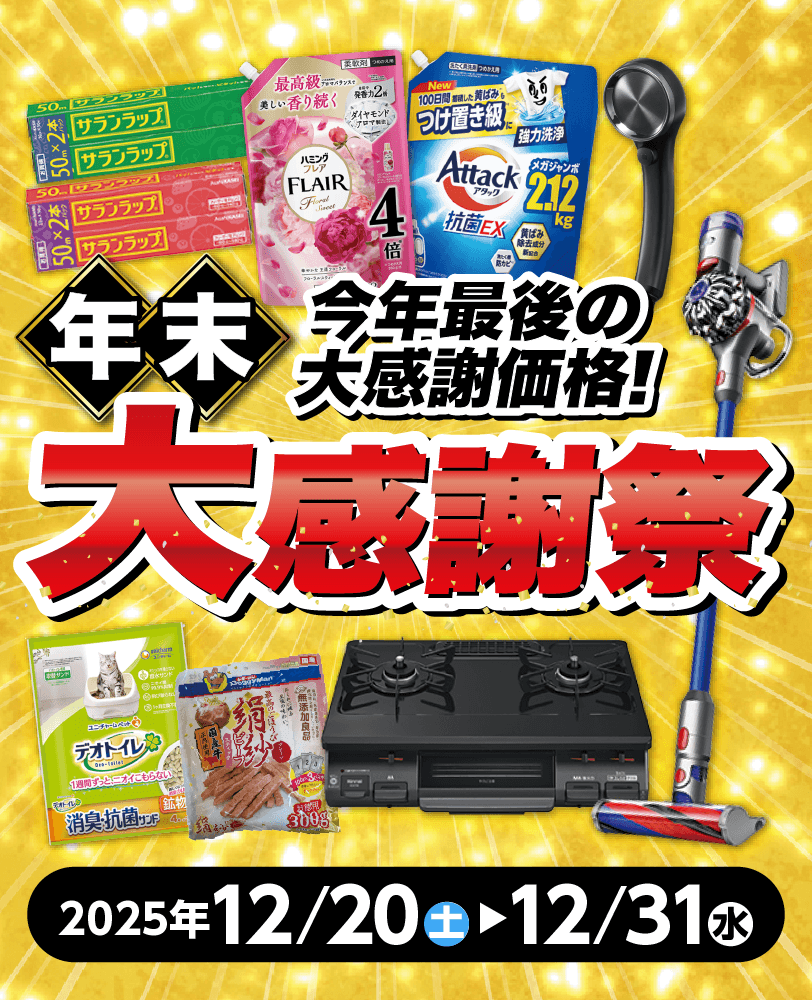 【12月31日(水)まで!】年末大感謝祭! このページの内容 チラシをチェック! キッチン用品 チラシをチェック! お掃除大作戦 チラシをチェック! 安全対策 チラシをチェック! <一例をご紹介> 【入会特典クーポンの配信について】 ※毎月15日までに会員情報をご登録いただいたお客様へは、ご登録月の月末までに配信します。 毎月16日〜月末までに会員情報をご登録いただいたお客様へは、ご登録月の翌月末までに配信します。 トップページへもどる