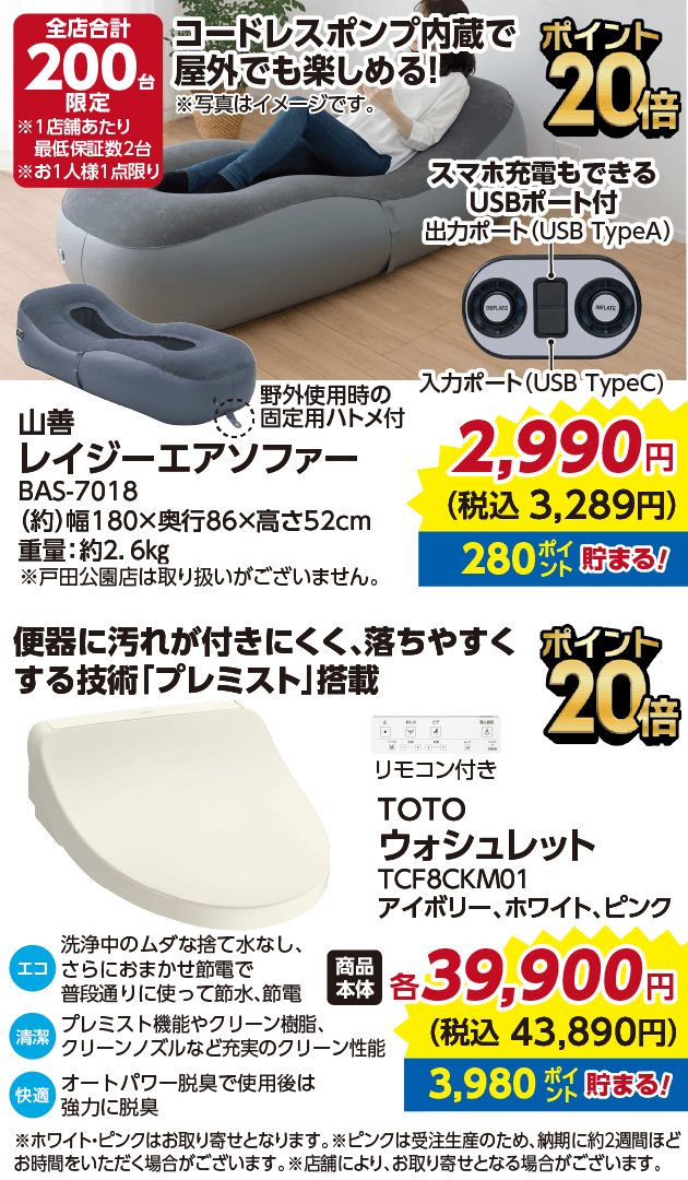 ※お取り寄せ商品につきましては、お申し込み時に会員証をご提示の上、キャンペーン期間中にお引き取りいただくことでキャンペーンの対象となります。