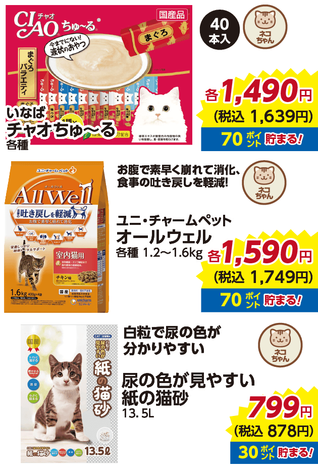 ●ペット用品:犬・猫・鳥・小動物・鑑賞魚等の用品およびフード等