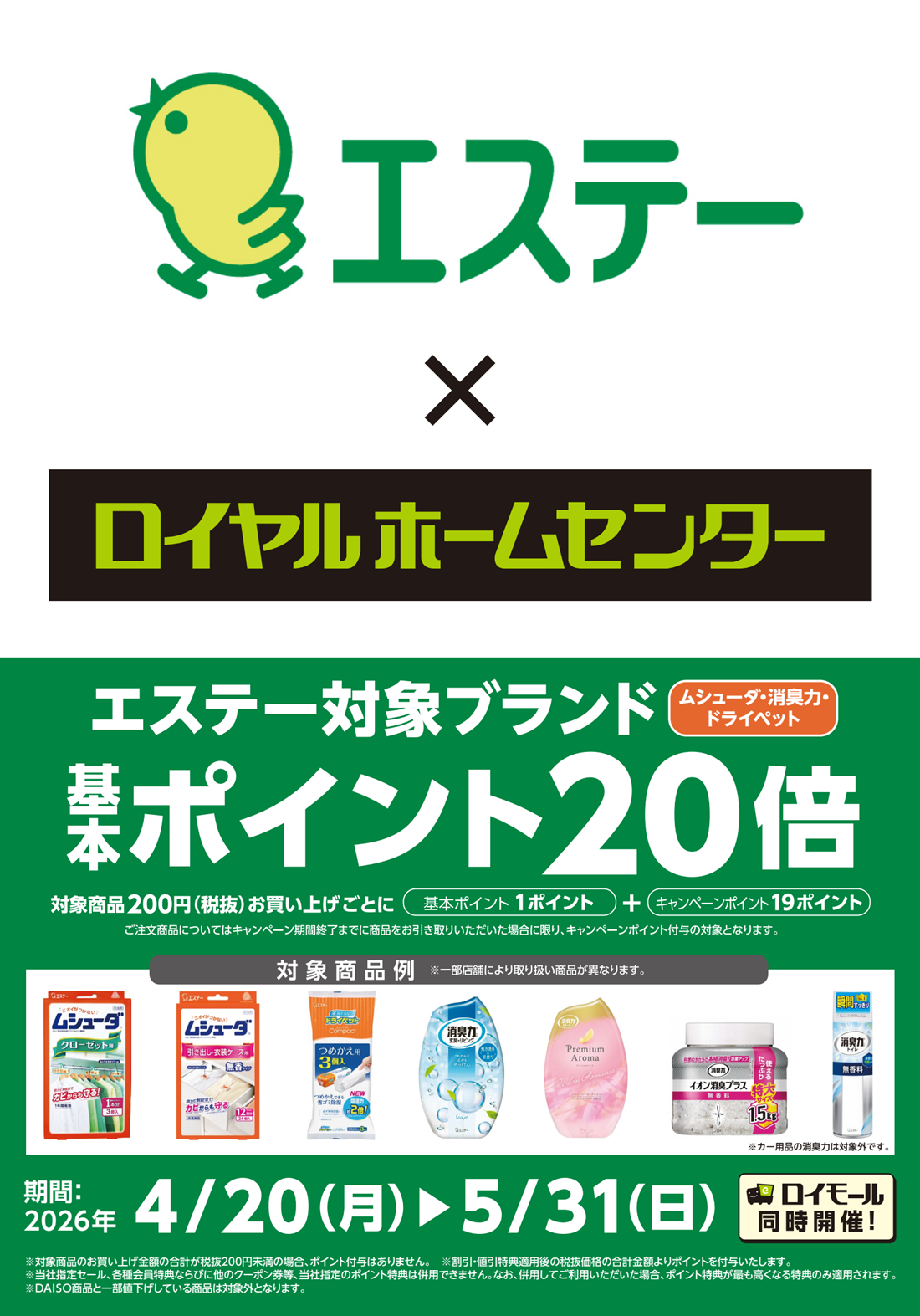 対象商品200円(税抜)お買い上げごとに基本ポイント1ポイント+キャンペーンポイント19ポイント