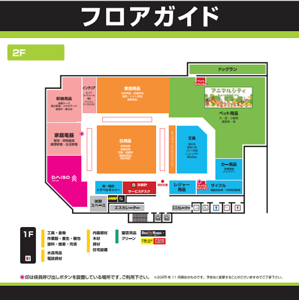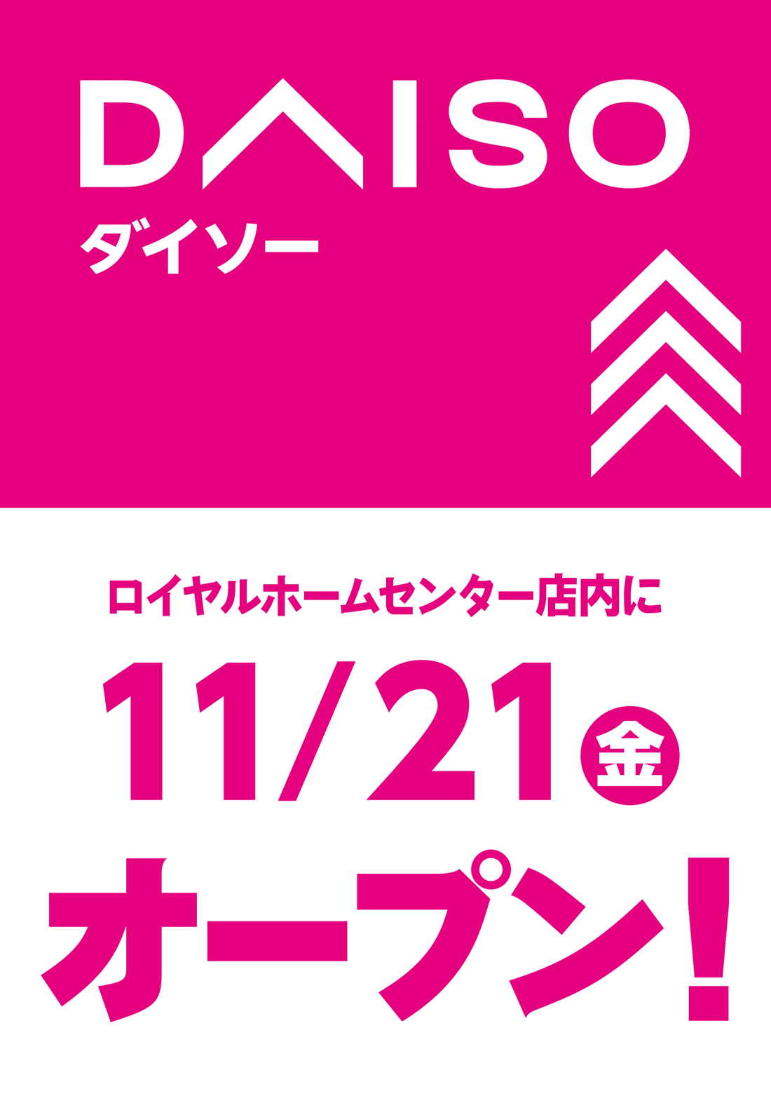 2025.11.20お知らせ西宮中央店 DAISO(ダイソー)商品の取り扱いを開始しました!西宮中央店からのご案内ですいつもロイヤルホームセンターをご利用いただきありがとうございます。このたび西宮中央店では、「DAISO(ダイソー)」商品の取り扱いを開始いたしました!事務用品、キッチン用品などおなじみの商品をはじめ、食品や飲料もお取り扱いいたしております♪ぜひこの機会にご来店くださいませ。▼DAISOコーナーご紹介▼▼フロアガイド▼今後ともロイヤルホームセンター西宮中央をご愛顧くださいますよう、よろしくお願いいたします。西宮中央店の詳細はこちら
